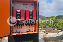 深圳kaiyun入口研发和技术团队支持和配合AWPower工程师为6个泵站成功设计和实施定制了光伏污水循环系统。每个泵站都配备了2台Solartech PB-G3系列智能光伏扬水逆变器,这些逆变器连接到多个泵上,这些泵在主湖和池塘之间移动水,以清除污水保持水质。系统所有运行数据信息都通过连接到蜂窝网络的内置无线通信模块传输到基于云的信息存储和报告系统,从而可以对泵站进行全面的远程监控。同时,在夏季光伏发电达到峰值时,光伏系统多余的发电量还可以输出到电网。