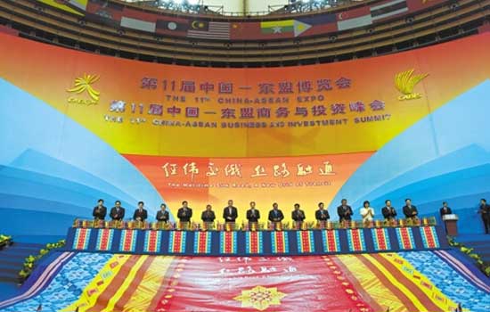 据悉,本届博览会东盟各国及区域外国家参展规格创下历史新高,现场气氛十分热烈。从2004年开始,中国-东盟博览会每年都在广西首府南宁举办,至今已成功举办了11届。每年举办期间,来自世界各国的客商汇聚南宁寻找商机,本届参展项目和产品涵盖了农产品、高科技机械设备、旅游、资源开发、科技合作等领域,其中不乏一些投资额巨大、科技含量极高的项目。本届博览会的成功召开,将进一步促进我国与东盟各国的深入合作,实现中国与东盟各国优势互补,共同繁荣,共同发展。