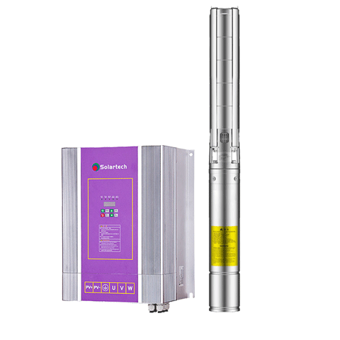 Solartech交流光伏水泵由光伏扬水逆变器和交流水泵组成。光伏扬水逆变器将太阳能阵列发出的直流电转换为交流电,驱动水泵,并根据日照强度的变化实时地调节输出频率,同时采用自主知识产权动态VI最大功率点跟踪算法,可靠性高,转换效率达98%。最大扬程可达400米,最大出水量可达3000立方米每天。